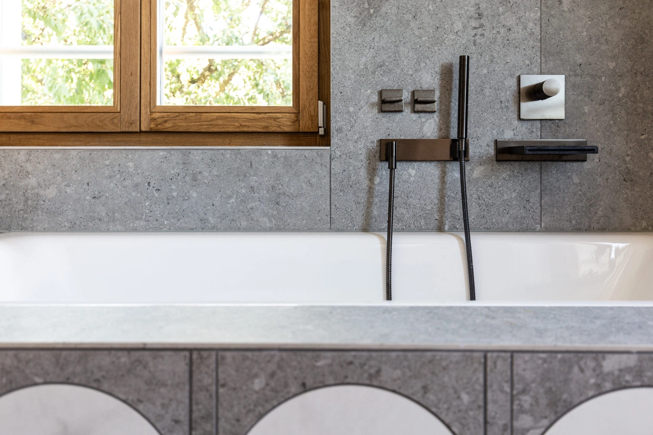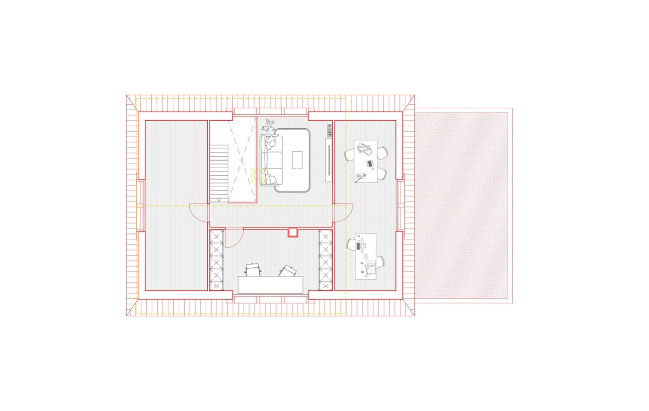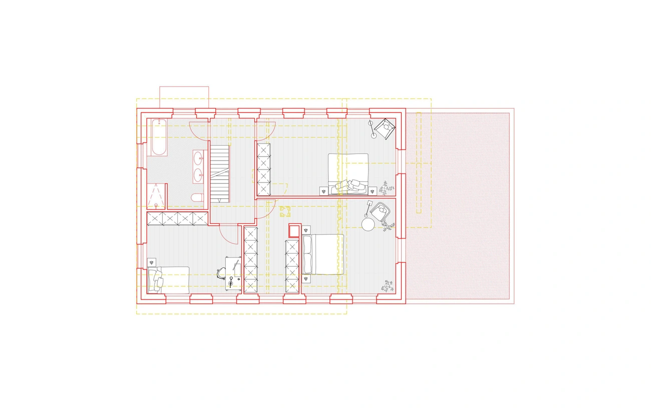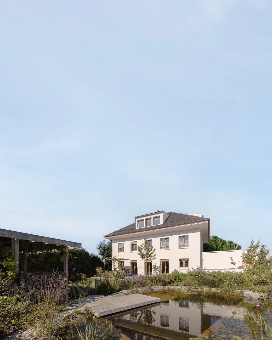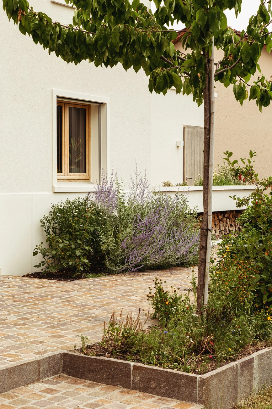 Dieses Haus befindet sich in einer Umgebung, in der Häuser ohne besondere Rücksicht auf ihre Umgebung gebaut werden – gebaut wie Objekte inmitten eines Grundstücks. Daher war die Idee des Städtebaus, ein sehr präzises Volumen zu schaffen, das das Haus völlig neu ausrichtete: die Hauptausrichtung des Gebäudes zu verändern, es in Richtung seines grossen Gartens zu lenken und einen Abschluss zur Hauptstrasse zu schaffen. Die Konstruktion ist einfach, aber anspruchsvoll.